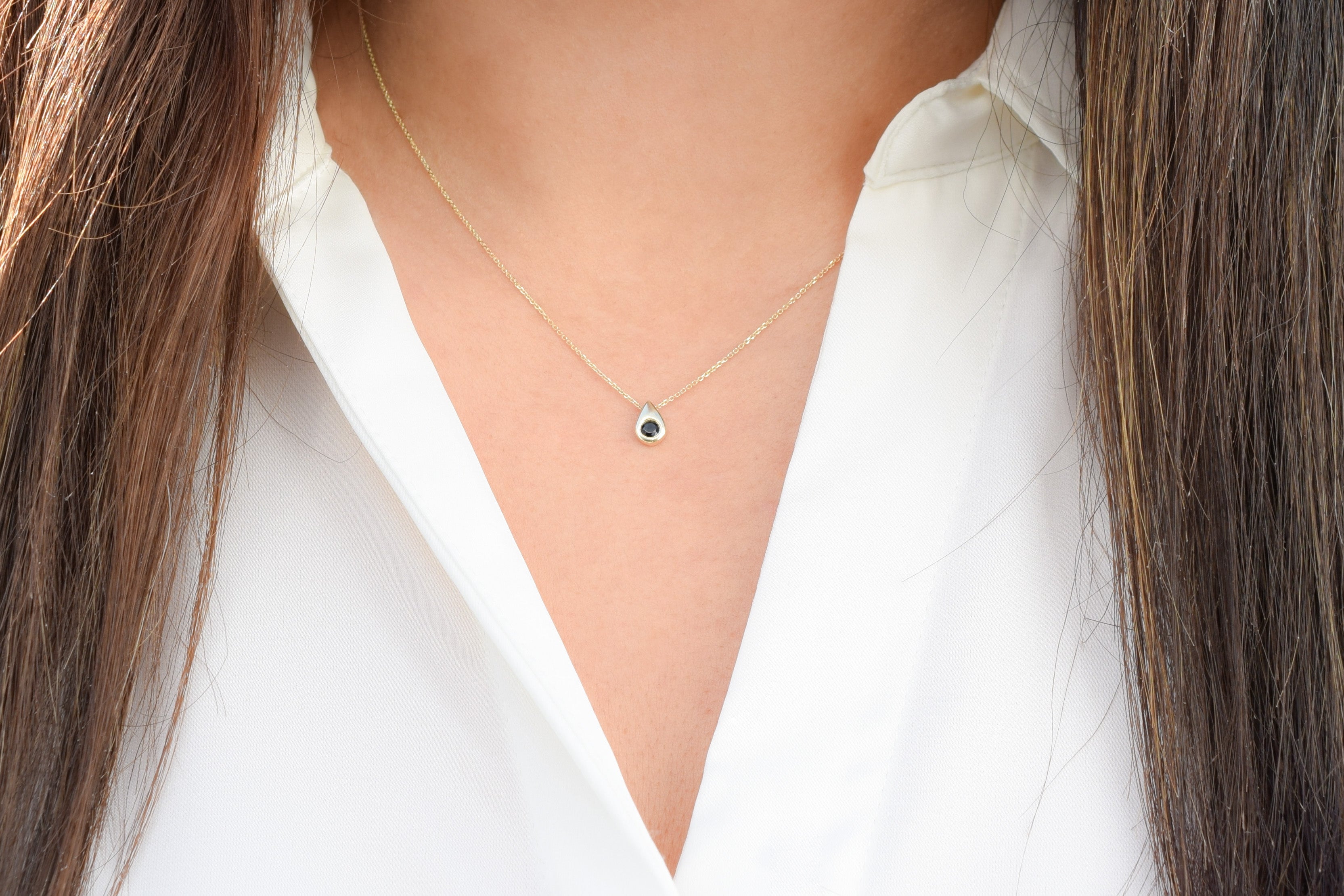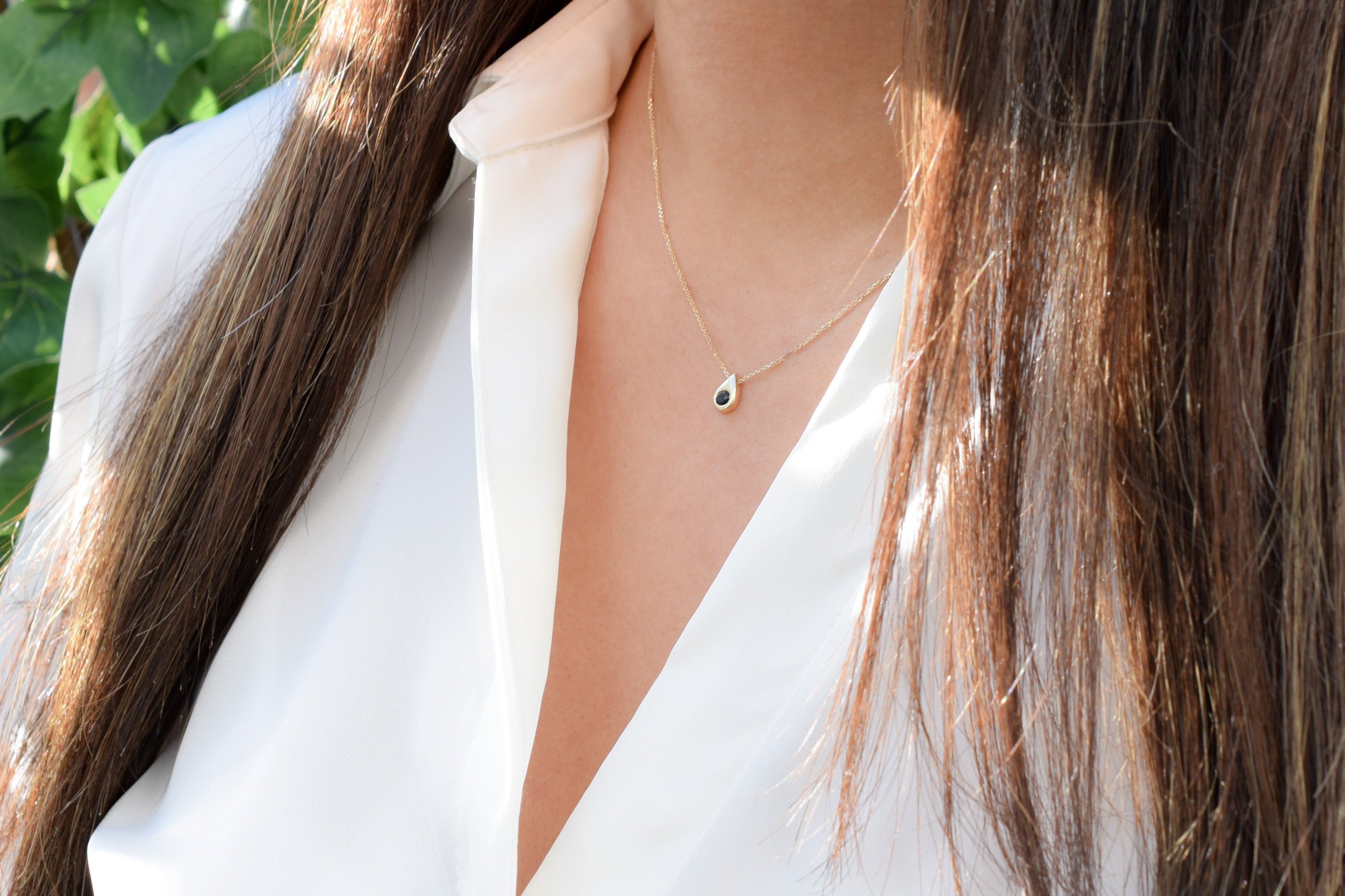 Deze verfijnde ketting heeft een ovale hanger bezet met een prachtige zwarte steen.