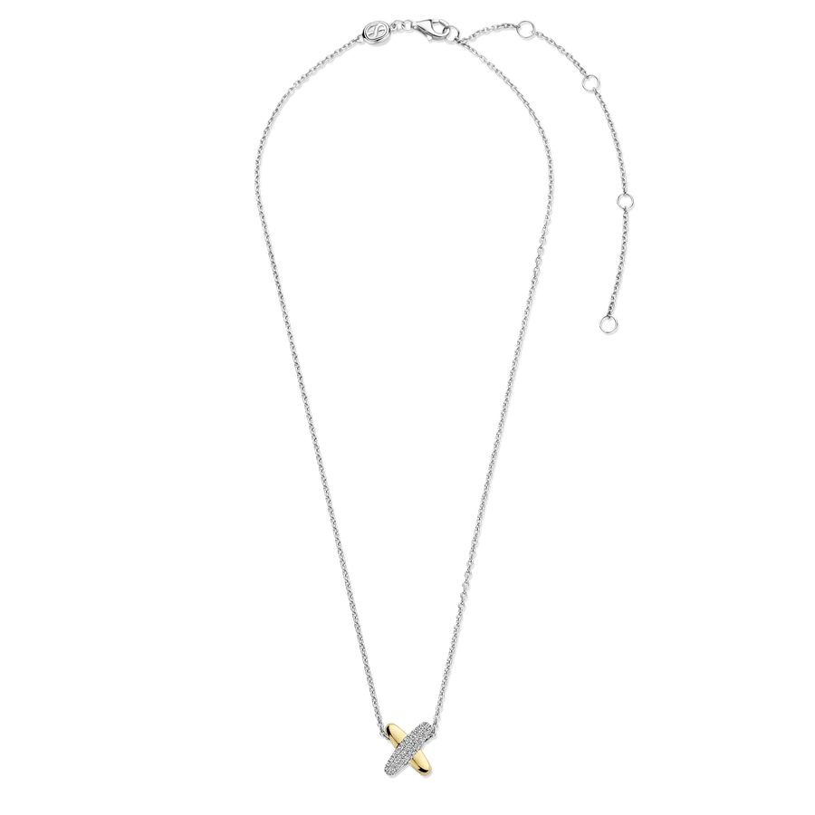 Omarm tijdloze elegantie met een vleugje moderne luxe met deze TI SENTO vergulde ketting 34003ZY/42. Gemaakt van 925 sterling zilver en verguld met een stralende goudkleur, heeft deze ketting een delicate crossover-ontwerp. Twee in elkaar grijpende ringen vormen het kruis, waarvan er één is gedecoreerd met een schitterend pavé van witte cubic zirconia die het licht prachtig vangt. De ander, verguld met warm geelgoudkleurig, voegt een vleugje luxe toe aan dit klassieke ontwerp. Deze veelzijdige ketting biedt een vleugje Art Deco-geïnspireerde stijl die elk outfit aanvult. De combinatie van klassiek symbool en modern design maakt het perfect voor dagelijks gebruik of speciale gelegenheden. Draag deze vergulde ketting alleen voor een vleugje ingetogen elegantie, of combineer het met andere TI SENTO kettingen voor een gepersonaliseerde look die jouw unieke stijl weerspiegelt. Met zorg vervaardigd voor gevoelige huid, garanderen deze nikkelvrije en hypoallergene studs blijvend comfort en kwaliteit.