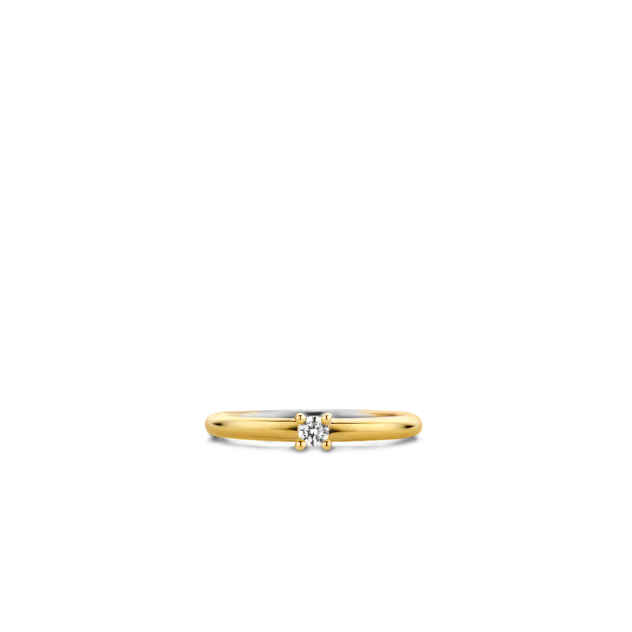 De witte zirkonia van deze zilveren TI SENTO solitaire ring 12211ZY wordt stevig vastgehouden door haar verfijnde pootjes. De fijne band is verguld volgens de standaarden van een goudsmid. Een klassiek stuk met een gouden uitstraling.