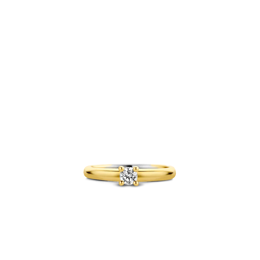 Deze zilveren TI SENTO solitaire ring 12212ZY heeft een glinsterende witte zirkonia middenstuk gezet in een prong zetting. De band is verguld volgens de standaarden van een goudsmid. Meng haar met anderen of geef het alle aandacht!