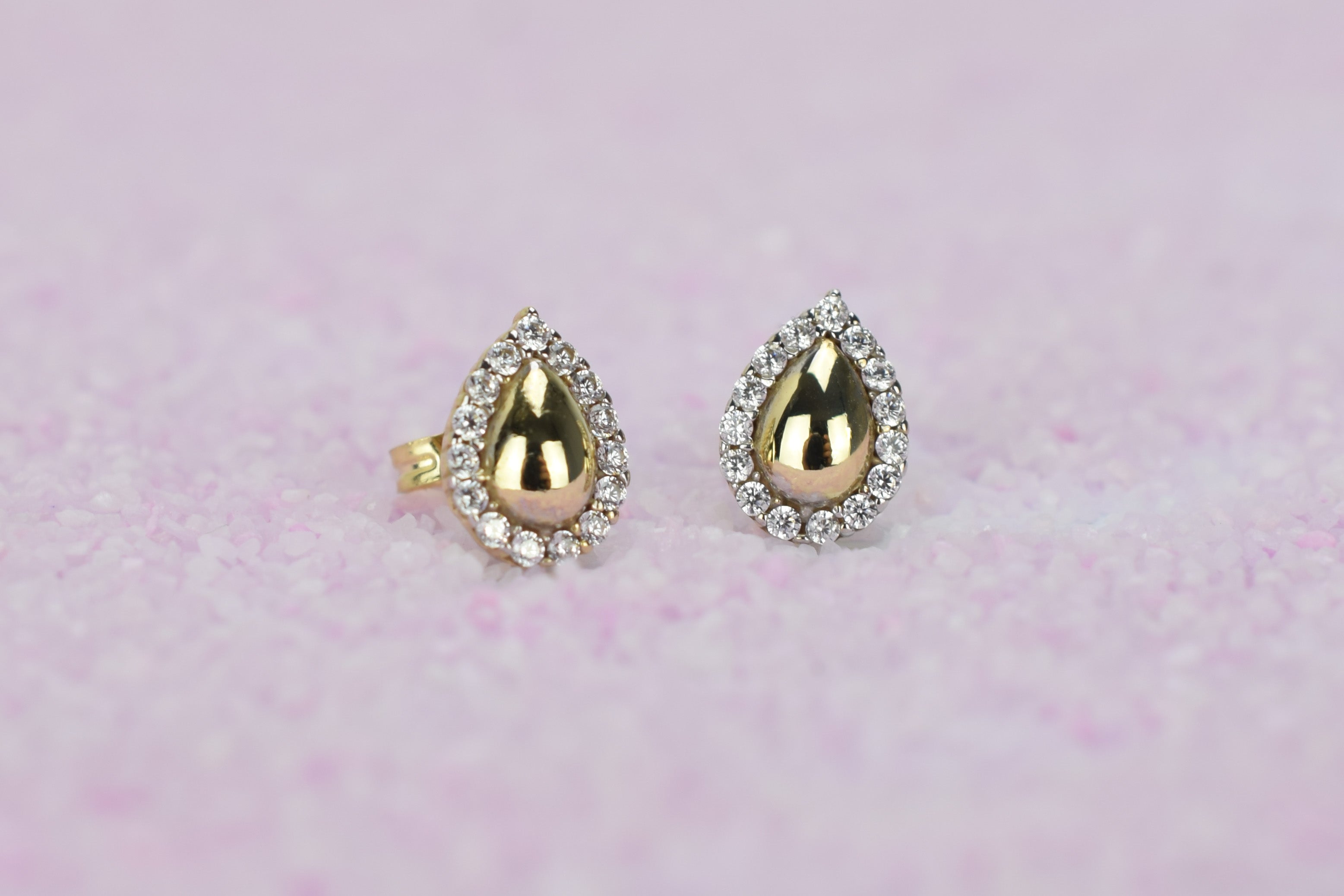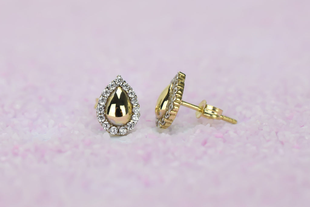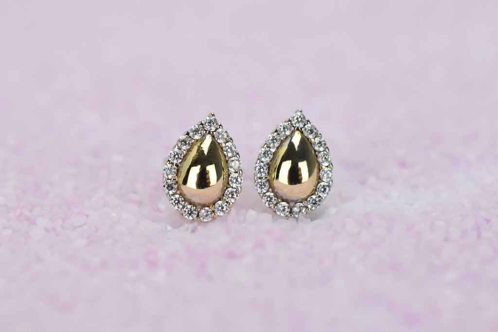 Deze trendy oorknoppen tillen iedere outfit naar een nieuw level. Een betoverend peervormige halo oorbellen, een prachtig ontwerp met accentstenen rondom.