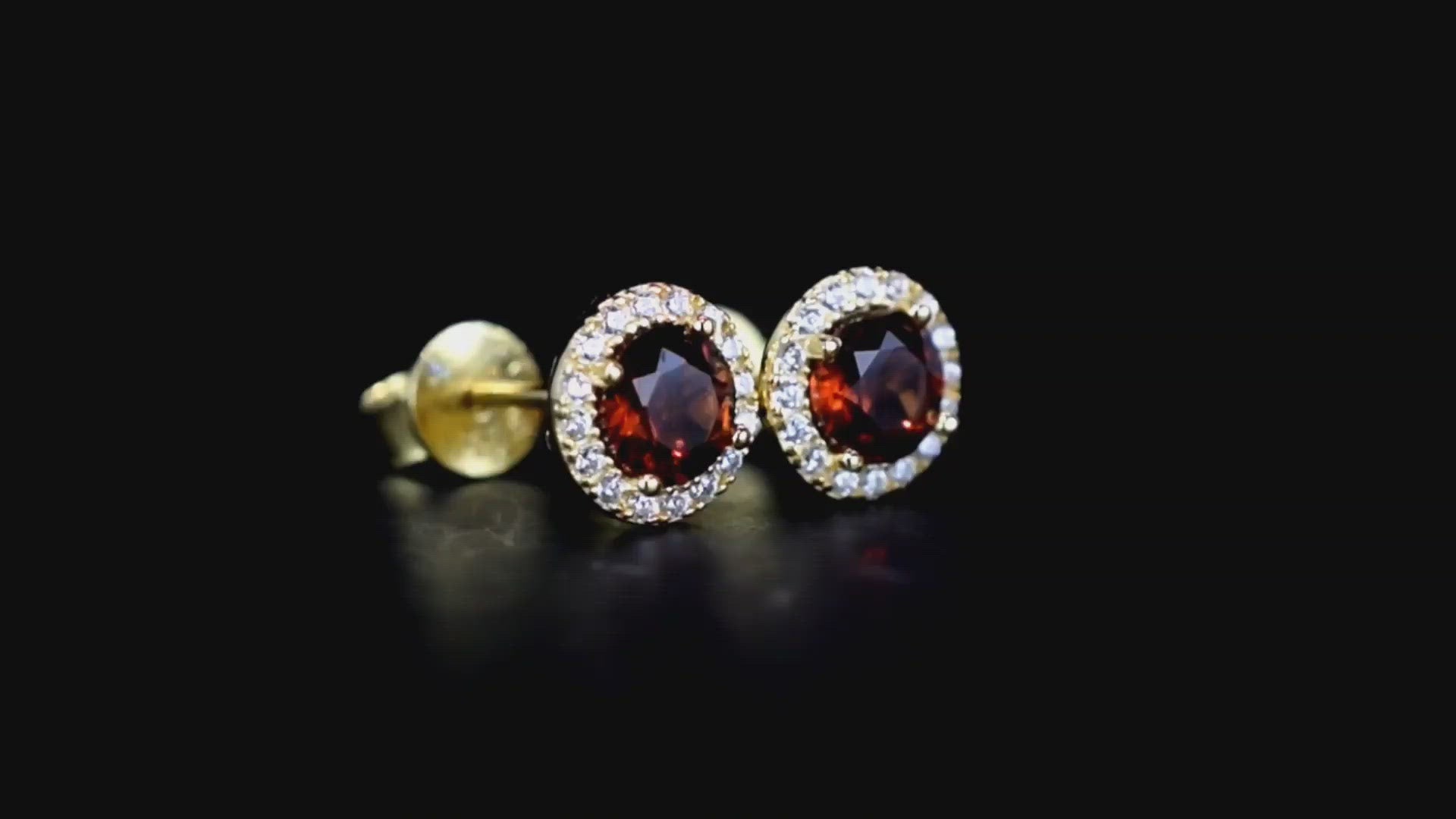 Deze sprankelende halo oorsieraden zijn bezet met adembenemende donker rode Granaat natuurstenen, die omlijst worden met heldere geaccentueerde kleine stenen. Een persoonlijk cadeau voor iemand die in augustus is geboren en een schitterend oorsieraad om elke dag te dragen.