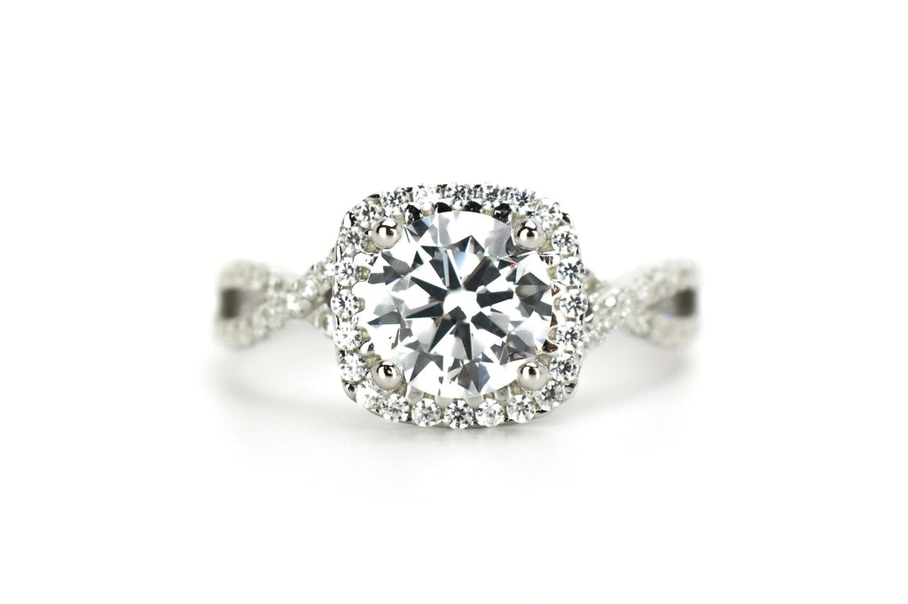 De band van de ring heeft een exclusief design, de gedraaide lijnen doen denken aan het symbool voor oneindigheid.